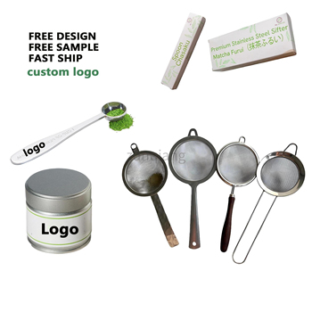 ชุดอุปกรณ์จับมัทฉะสแตนเลสช้อนตวงกระป๋องมัทฉะภาชนะใส่ชาแบบมีรอยรั่วพร้อมโลโก้ออกแบบได้ตามต้องการ